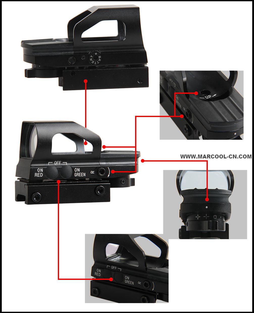 Leave both eyes open while you shoot, keeping your complete field of view open. Idea for hunting, tactical shooting and airsoft.